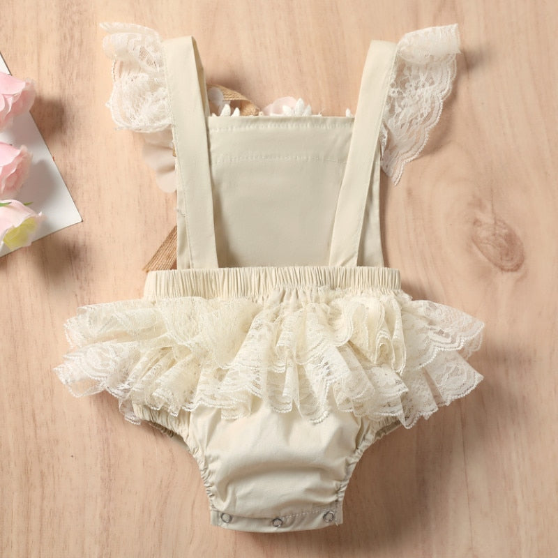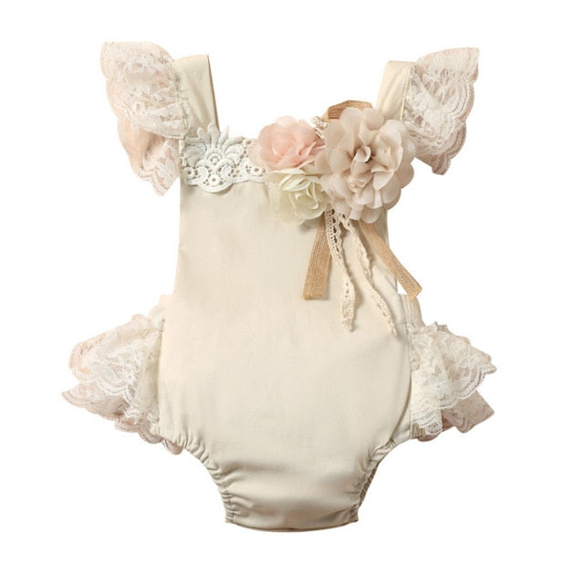Lace Romper with Removable Flower
