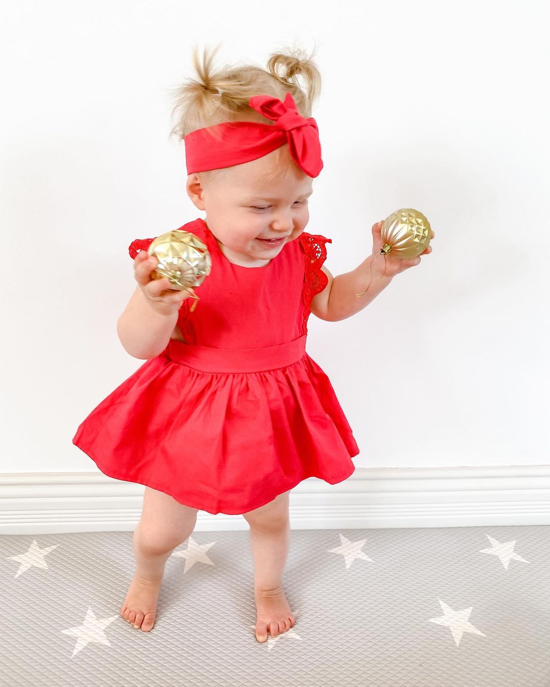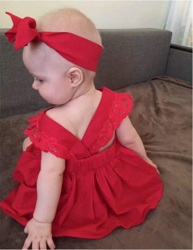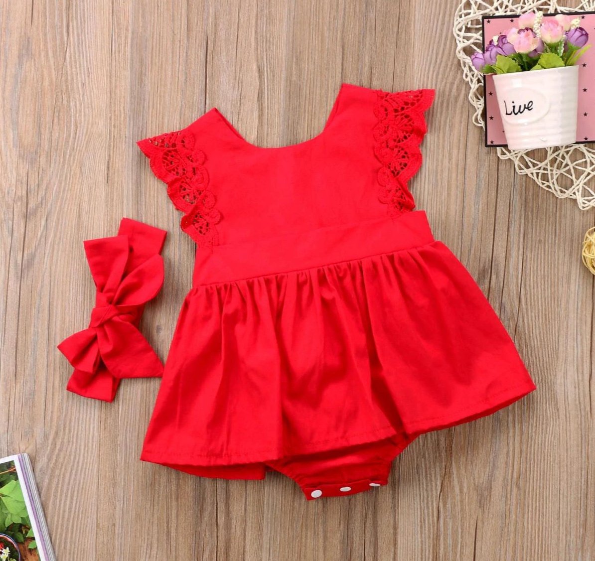 This vibrant Red Ruffle Lace Romper Dress is sure to make a statement! Perfect for any occasion.